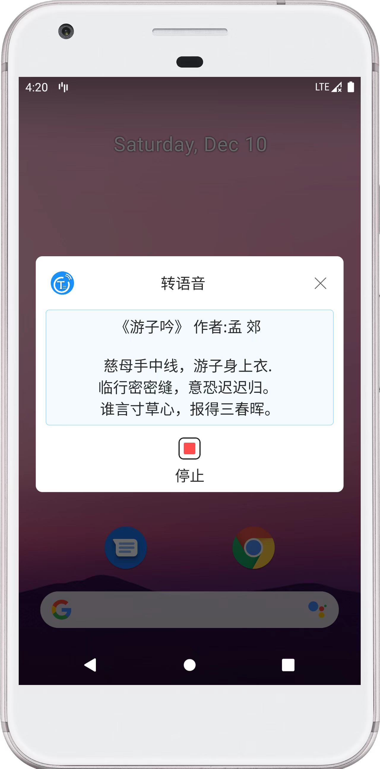 快捷获取复制内容,打开应用迅速将文字内容转换为语音,解决不方便看文字的用户群体